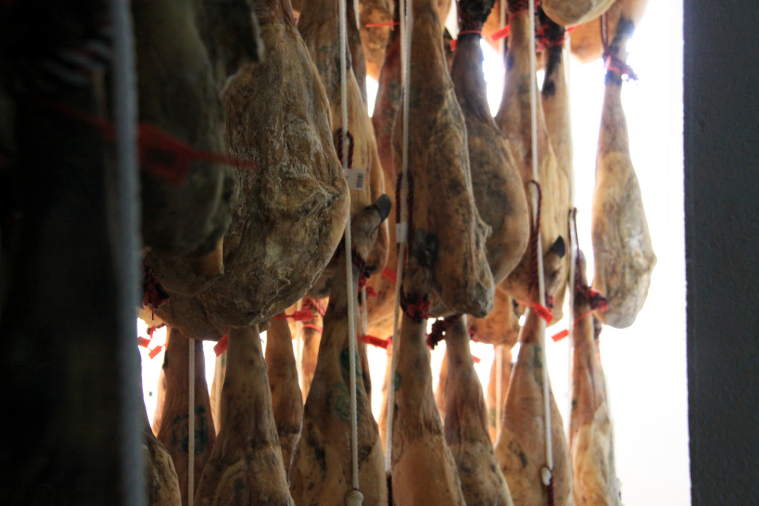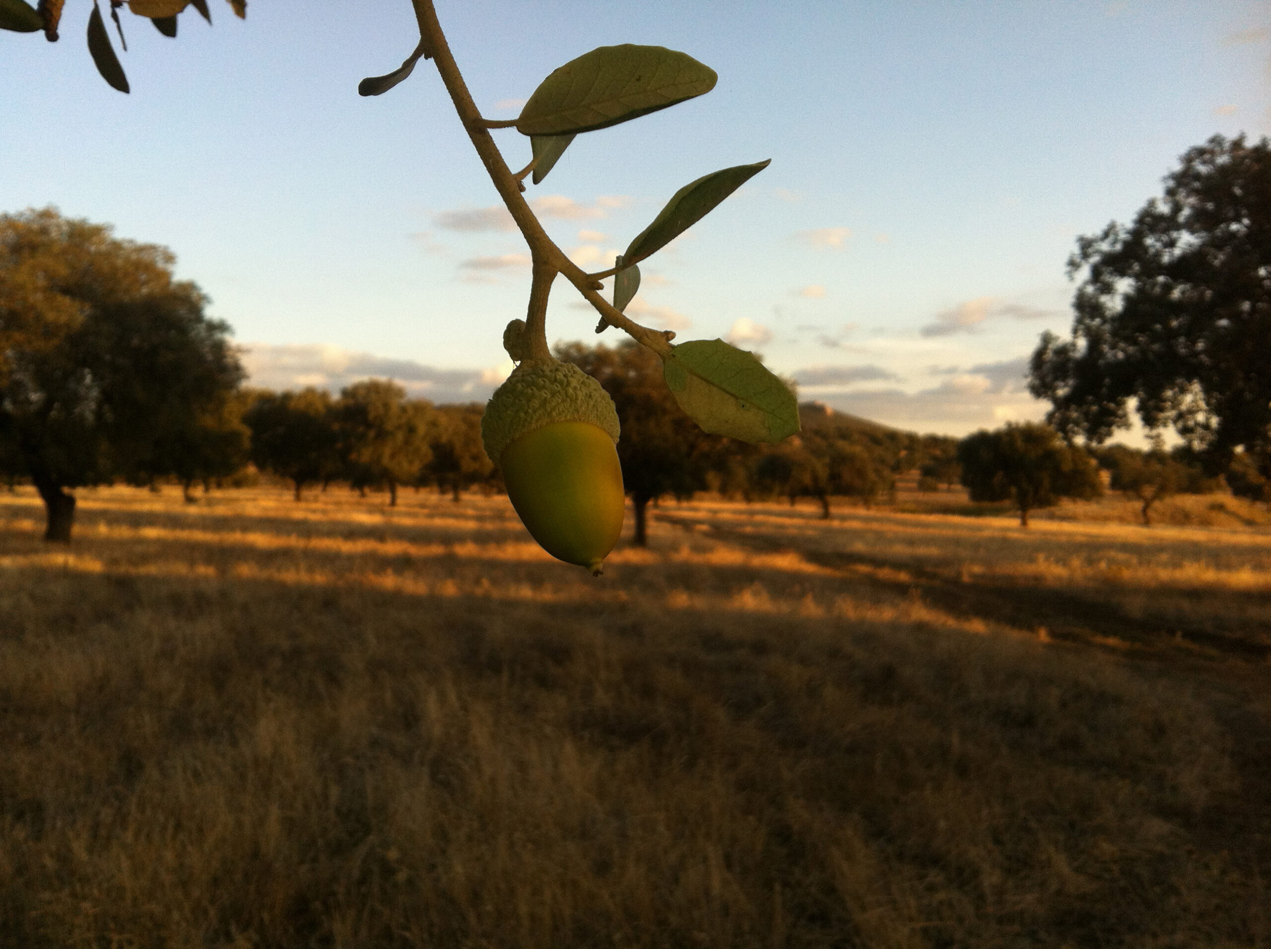 Procedentes de Cerdos Ibéricos que se cría en dehesa, recibe una alimentación a base de hierbas y piensos (cereales y leguminosas), y en el período de montanera (engorde) entre noviembre y marzo, se alimenta de bellotas y pastos, alcanzando el peso óptimo.