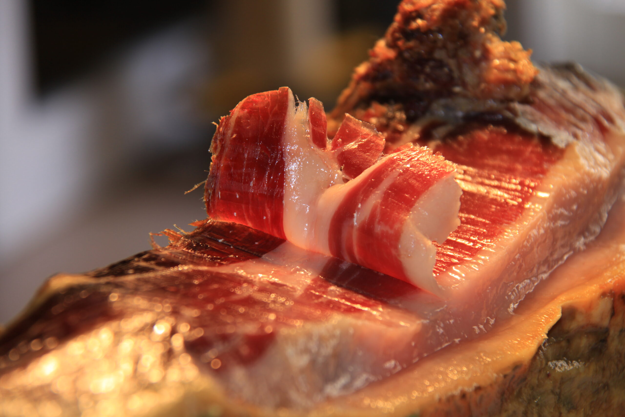 Procedente de Cerdos Ibéricos que se cría en dehesa y recibe una alimentación a base de hierbas y piensos (cereales y leguminosas).